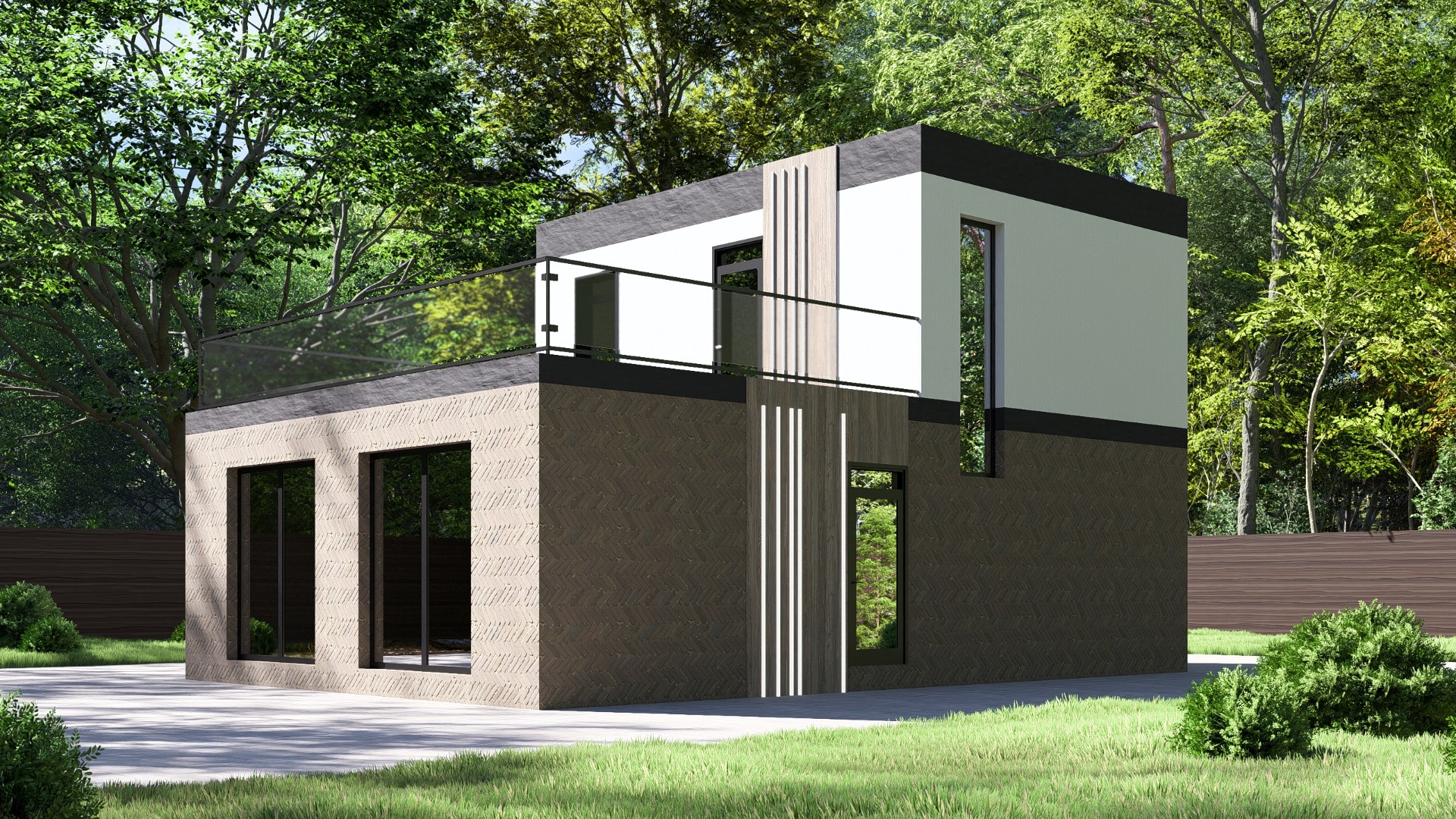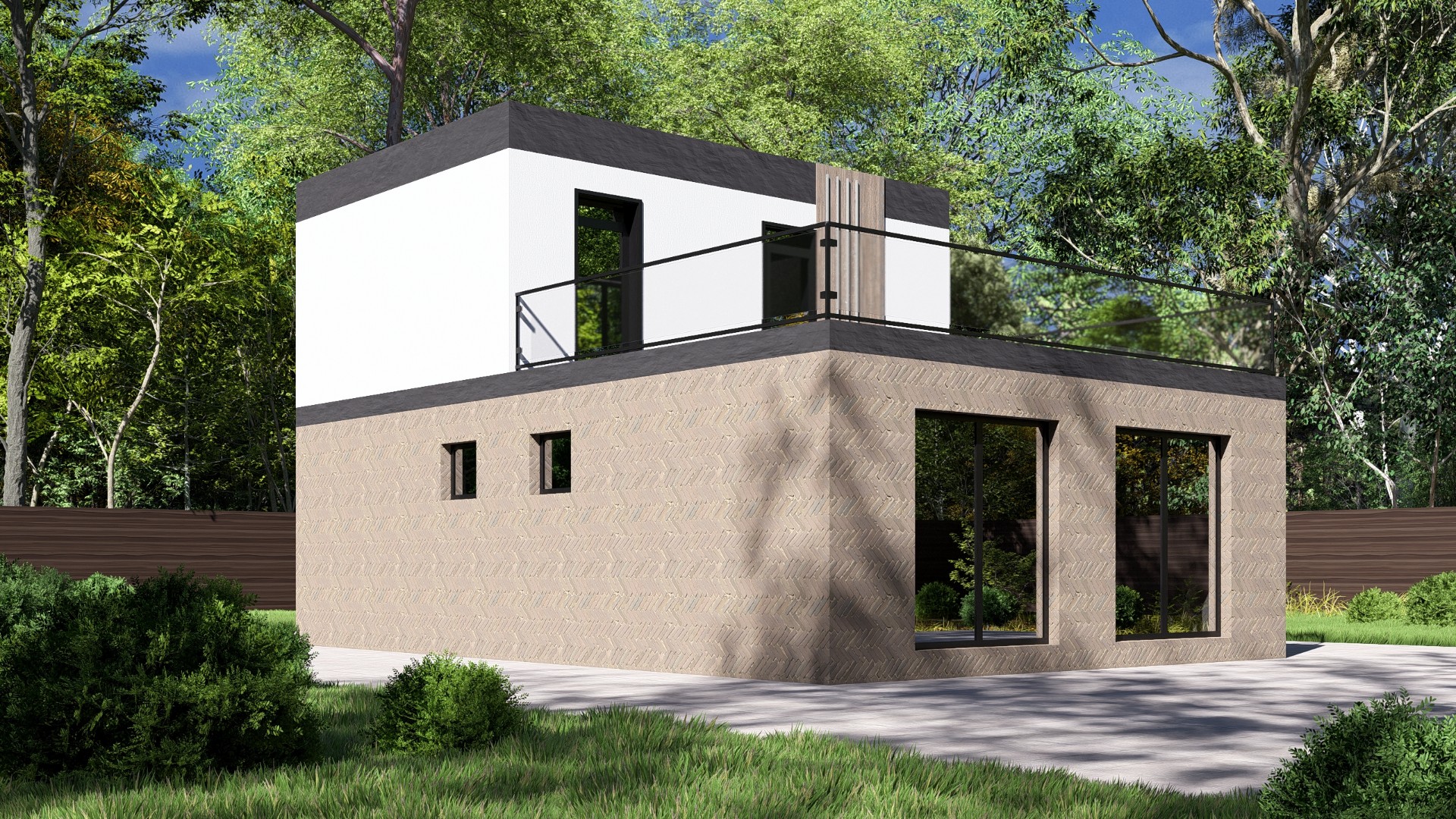 Фундамент + стены + крыша + окна + двери + техническая лестница